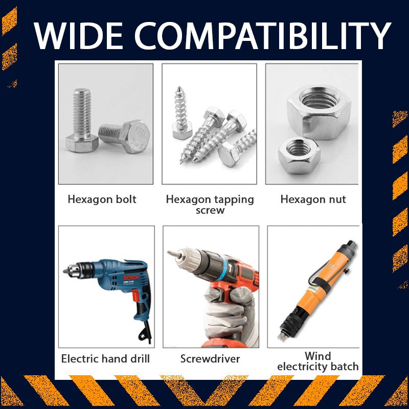 Widely compatible with electric drills, hand drills, electric screwdrivers, manual screwdrivers, etc., for easy drilling, screw installation, and removal. Ideal for automotive repair, home repair, manufacturing, construction, industrial use, and more.